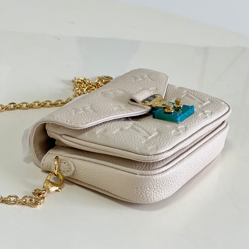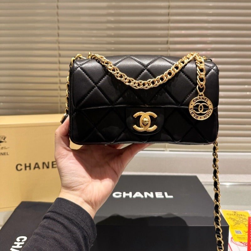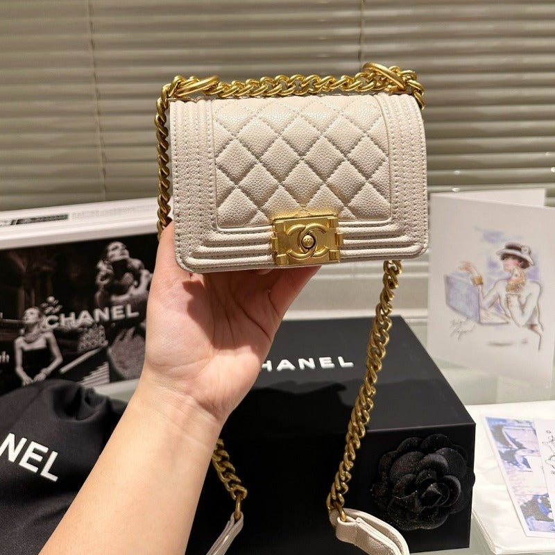 Size 15 x 10 cm Main Material: GENUINE LEATHER Signature Boy push-lock fastening Signature gourmette-chain shoulder strap Leather and chain-link shoulder