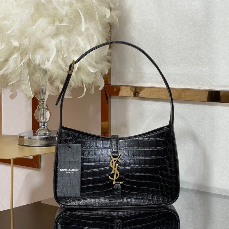 ZENVIA – Hobo Logo-plaque Shoulder Bag Black Croc