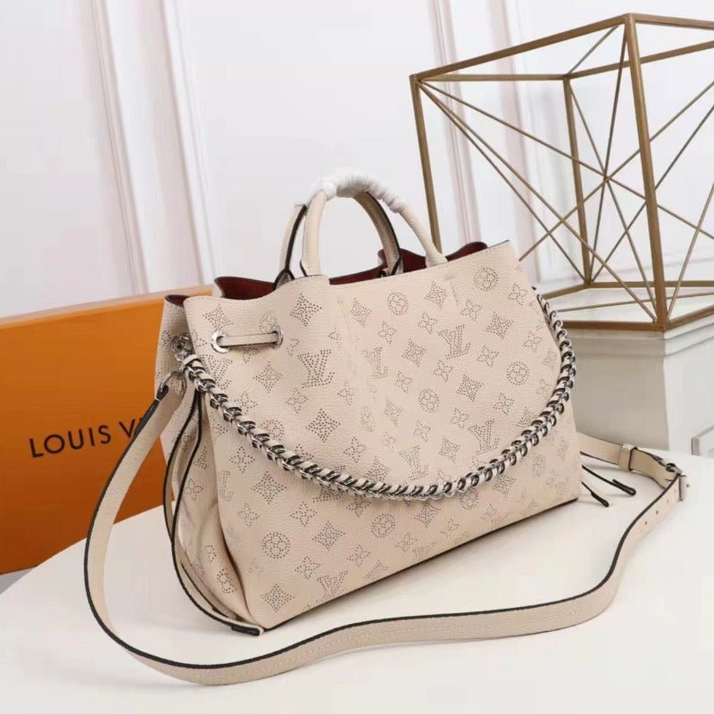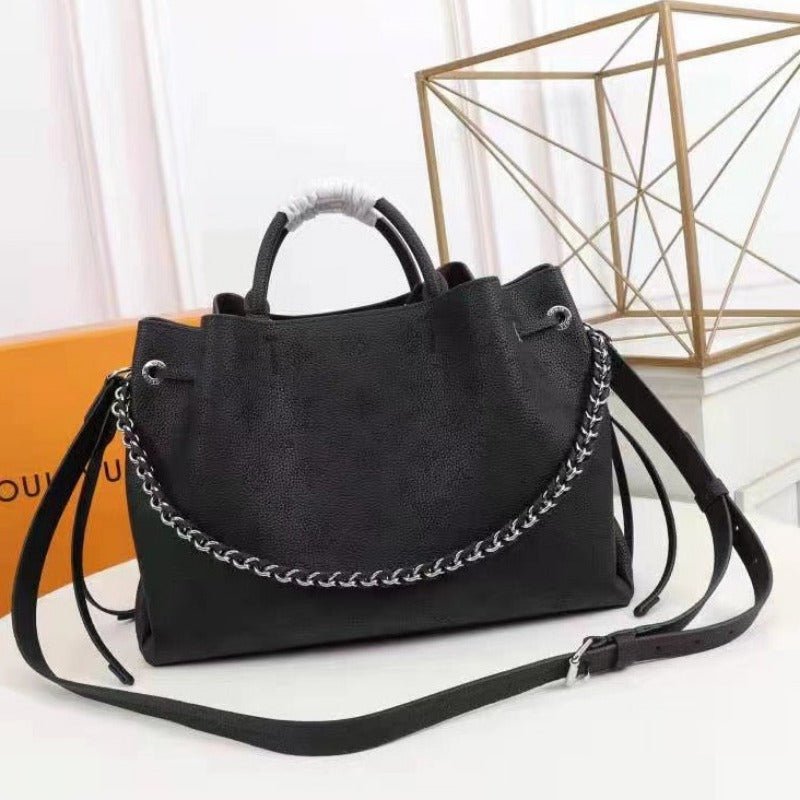 Material: Genuine leather Size: 35 cm, 30 cm, 25cm Gold colored metallic pieces Brand box and dust bag included
