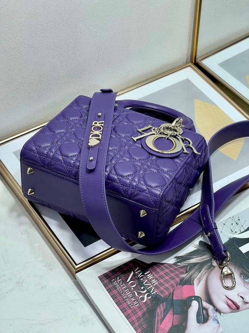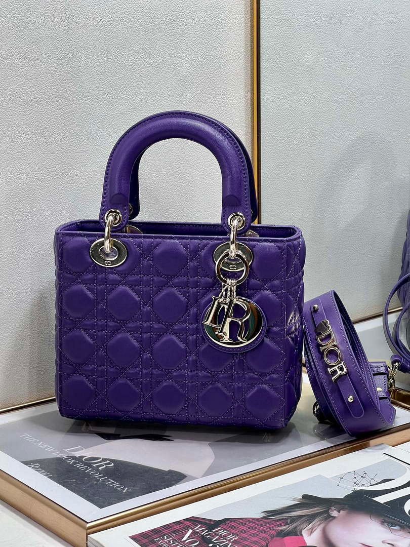 The Lady Dior My ABCDior bag epitomizes Dior’s vision of elegance and beauty. Sleek and refined, the timeless style is crafted in blush lambskin with Cannage stitching, creating the instantly recognizable quilted texture. Pale gold-finish metal ‘D.I.O.R.’ charms further embellish its silhouette with an elegant allure. Featuring a shoulder strap that can be personalized with badges, the small, unique design may be carried by hand or worn crossbody.