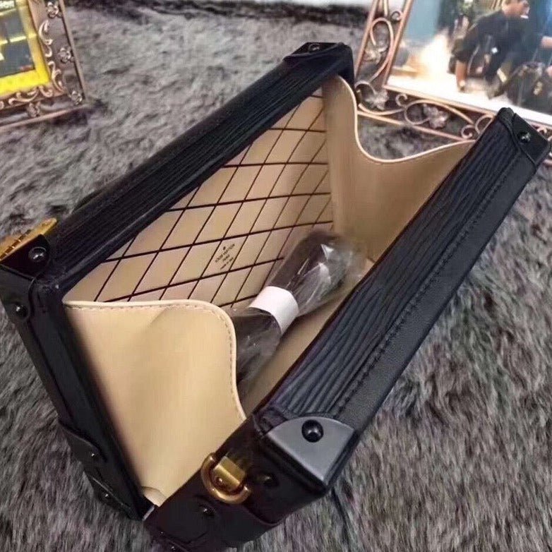 Material: Genuine leather and canvas Size: 20 x 10 cm Gold colored metallic pieces Brand box and dust bag included