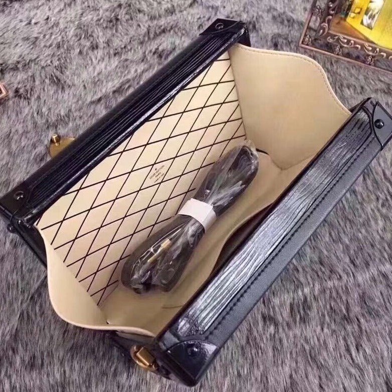 Material: Genuine leather Size: 20 x 10 cm Gold, black colored metallic pieces Brand box and dust bag included