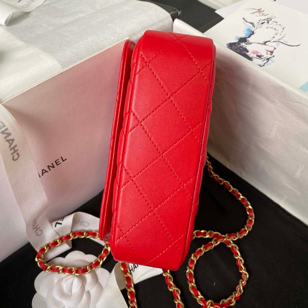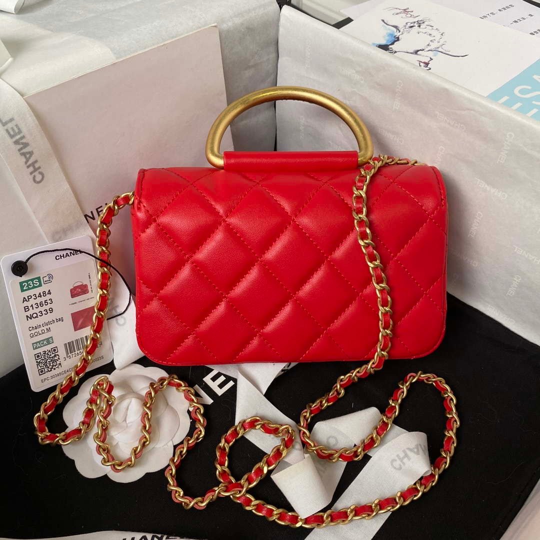 ZENVIA – Clutch With Chain Shiny Lambskin & Gold-Tone Metal Red