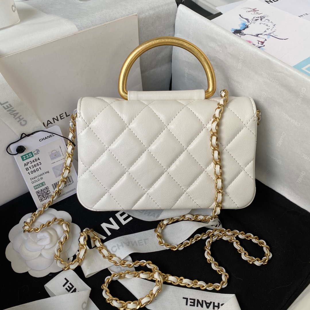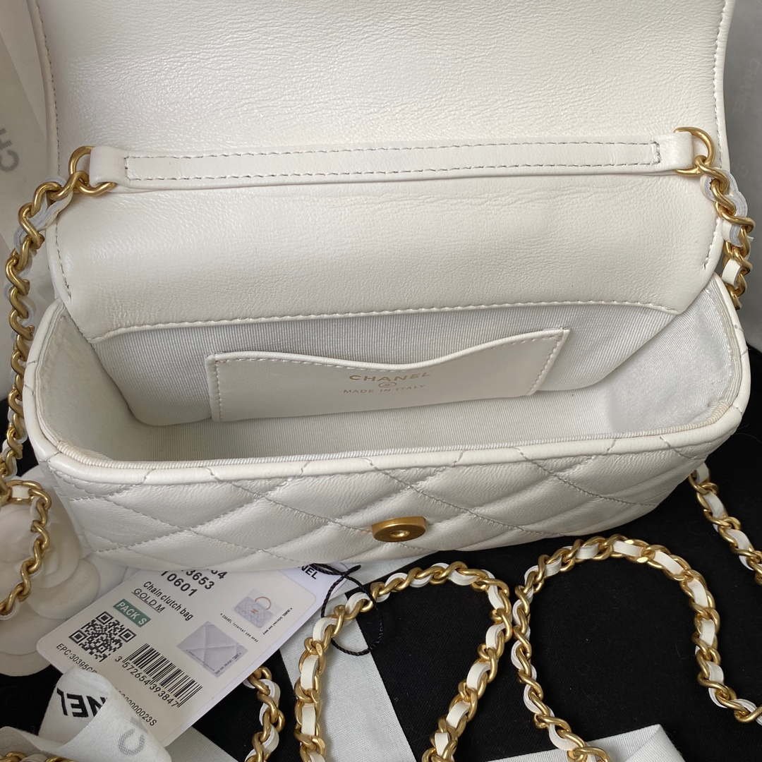 ZENVIA – Clutch With Chain Shiny Lambskin & Gold-Tone Metal White