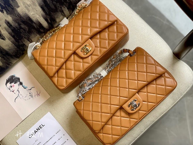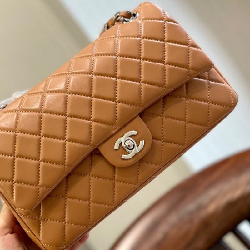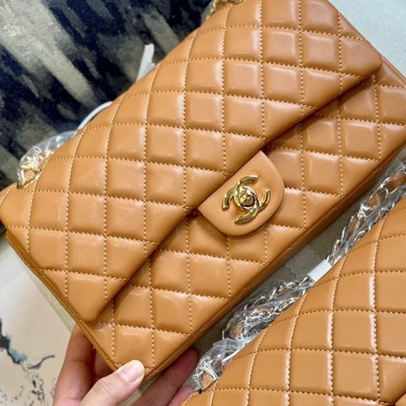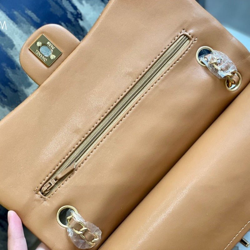 ZENVIA – Lambskin Classic Double Flap Bag Camel