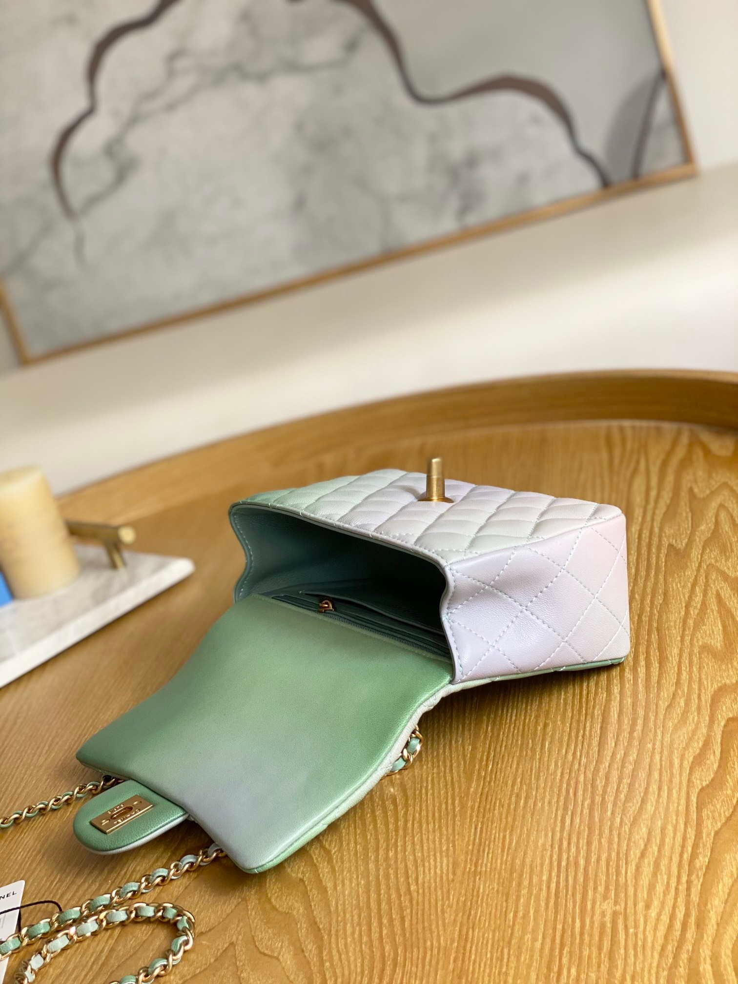 ZENVIA – Lambskin Flap Bag with Top Handle Gradient Green
