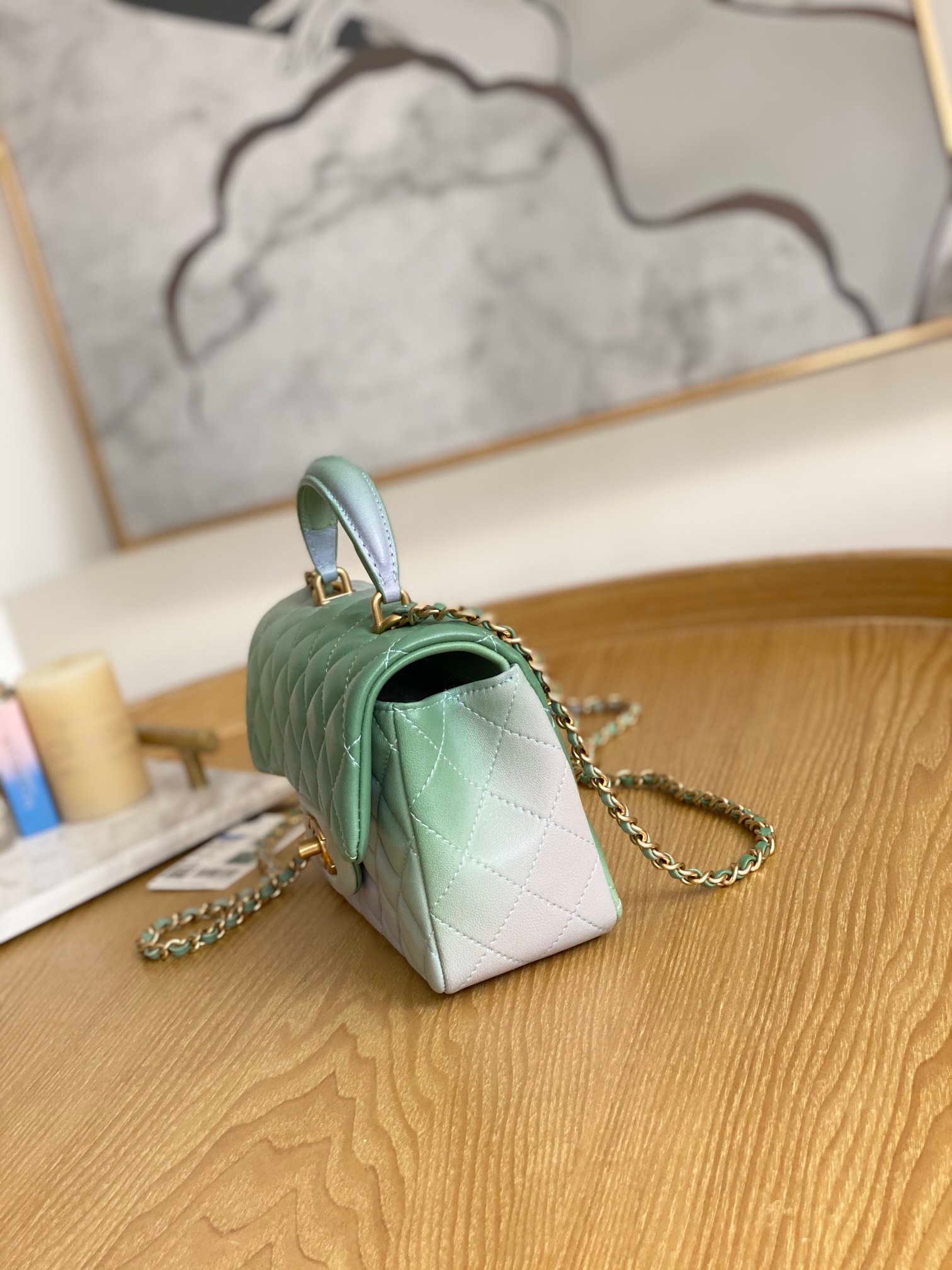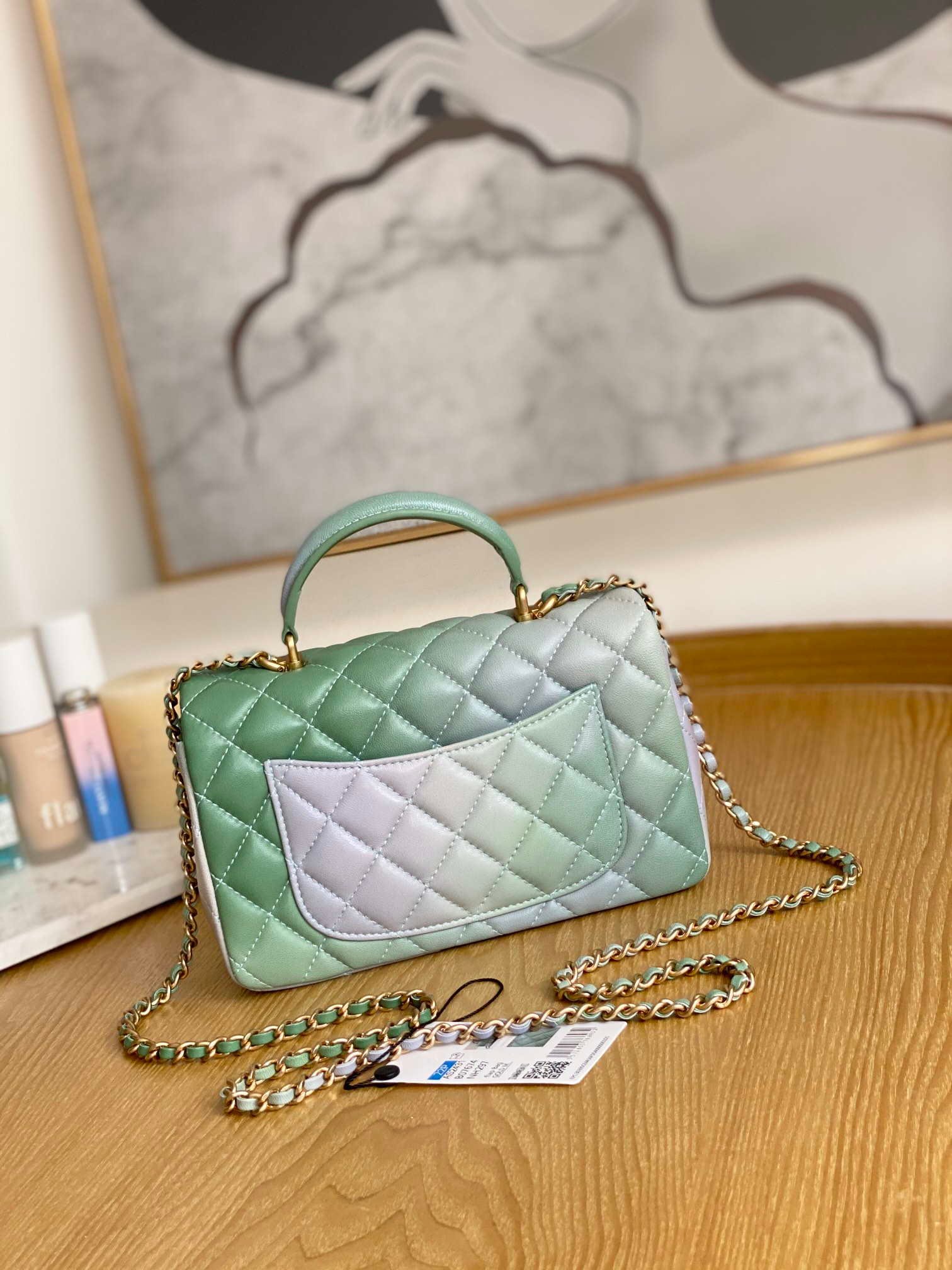 Be the first to review “ZENVIA – Lambskin Flap Bag with Top Handle Gradient Green” Cancel reply