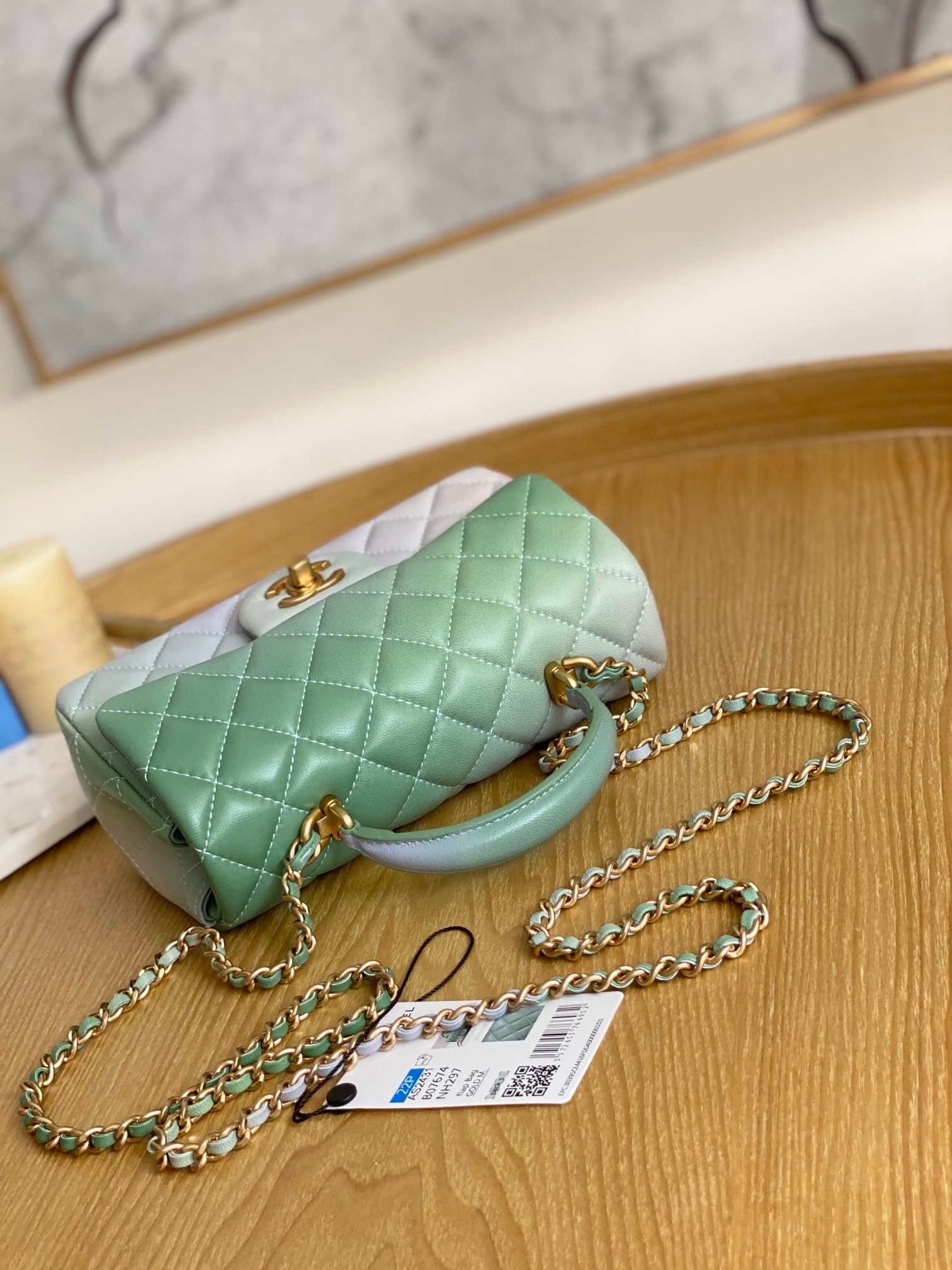 - AS2431 Chanel mini flap bag with top handle Shoulder bag.