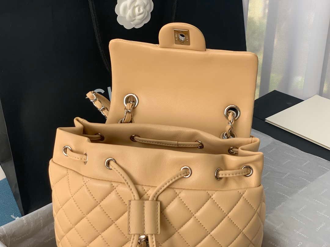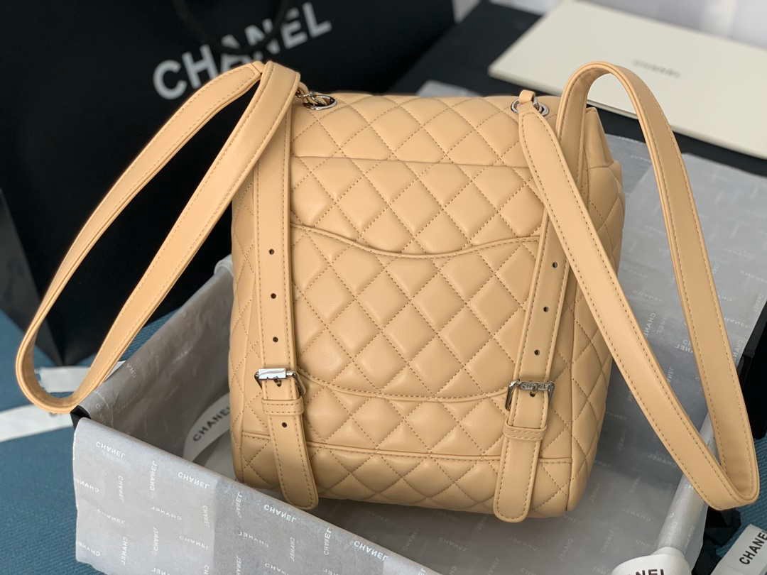 ZENVIA – Lambskin Vintage Backpack Apricot Silver