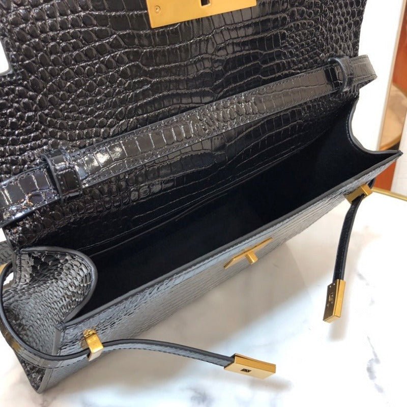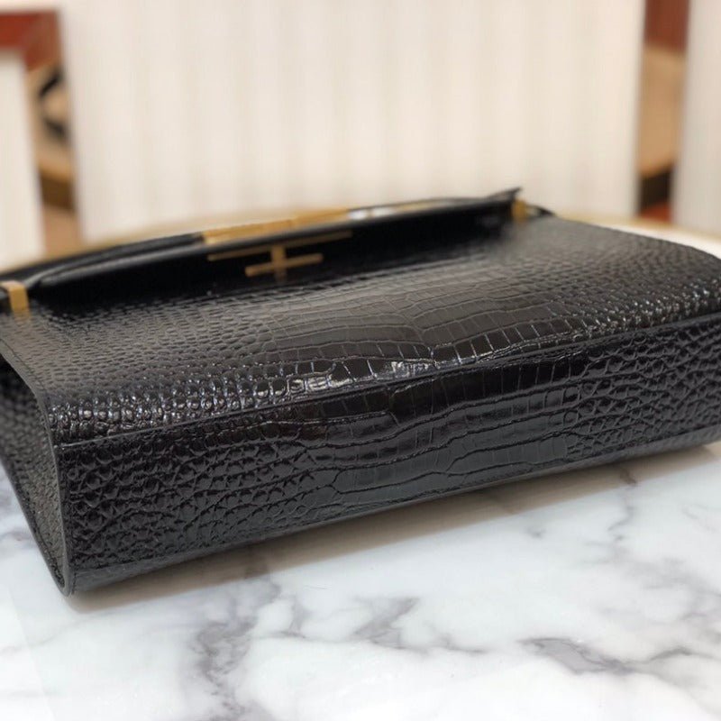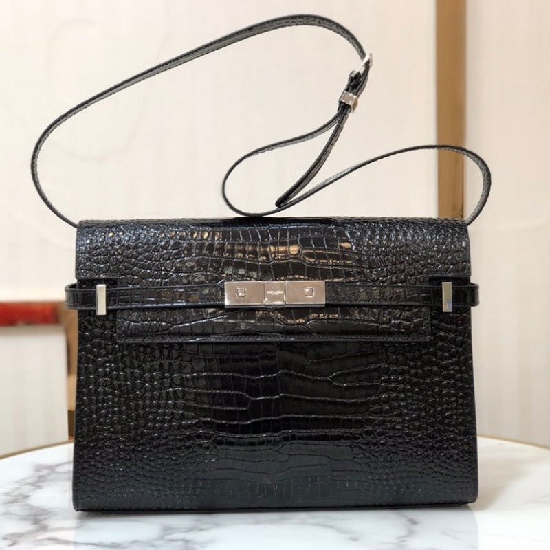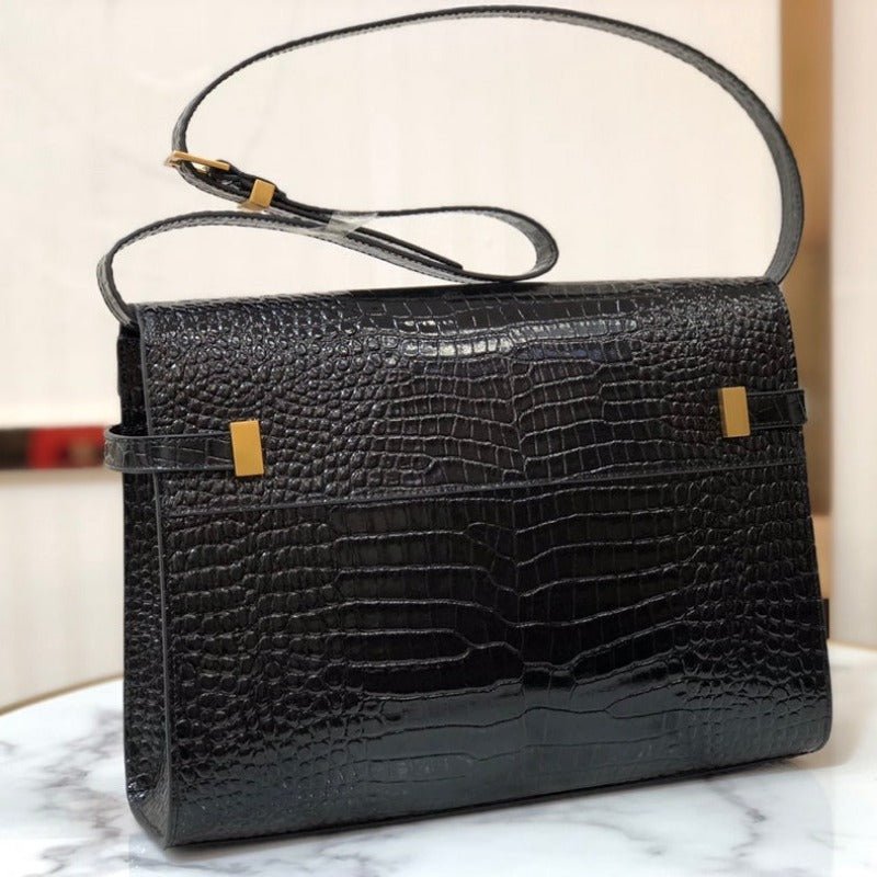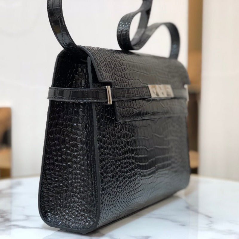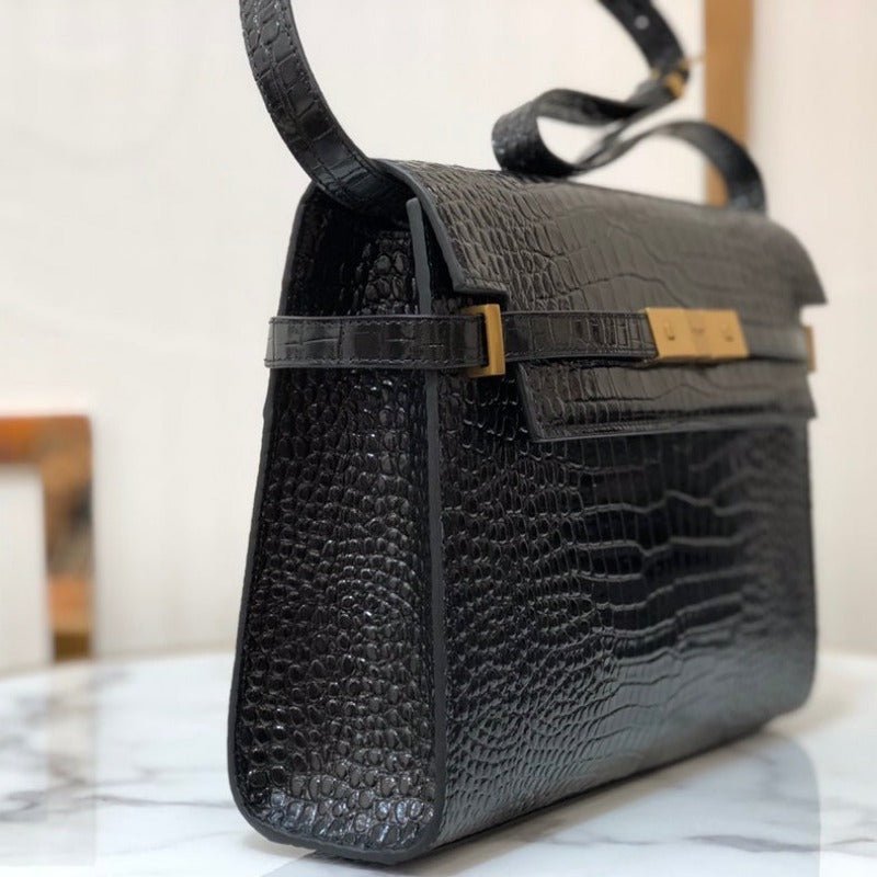 ZENVIA – MANHATTAN SHOULDER BAG IN BOX BLACK CROC