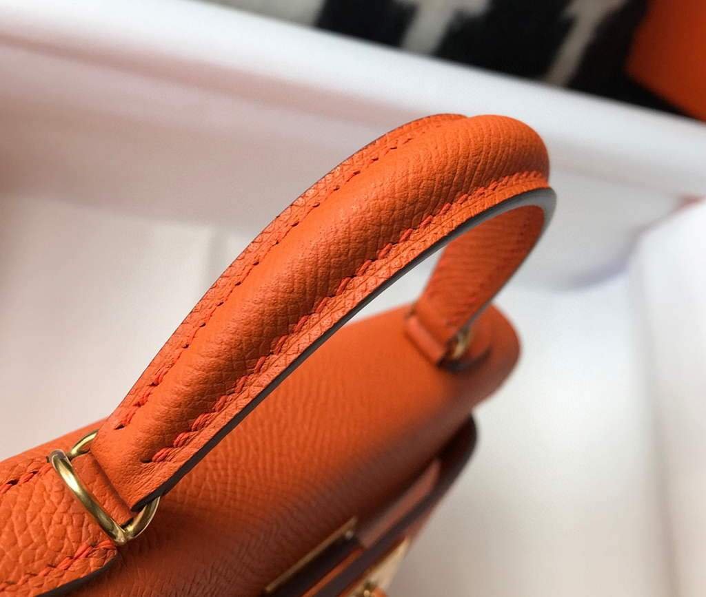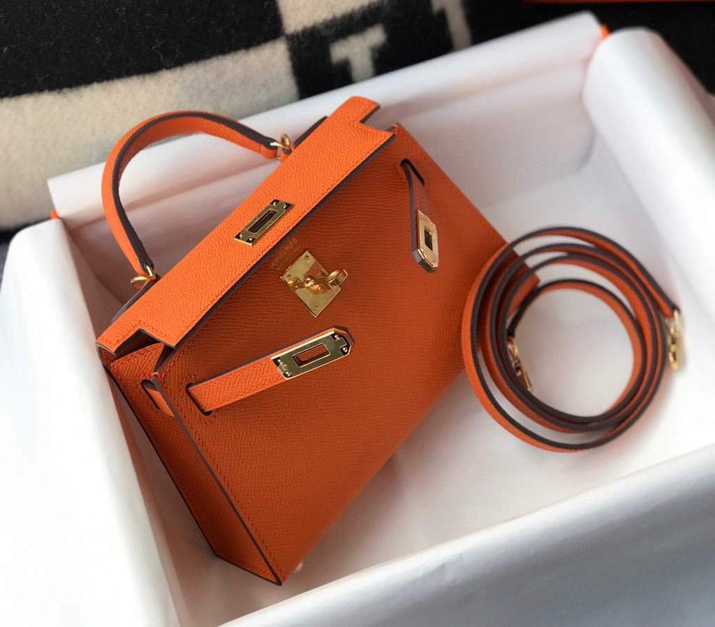 The Kelly Mini is loved by many for its minimalist silhouette. Handcrafted from Epsom leather, it is coloured in Orange. Topped with palladium hardware, the 2023 bag (“B” stamp) is in unworn condition. Contrast this Kelly Mini to dark coloured styles.