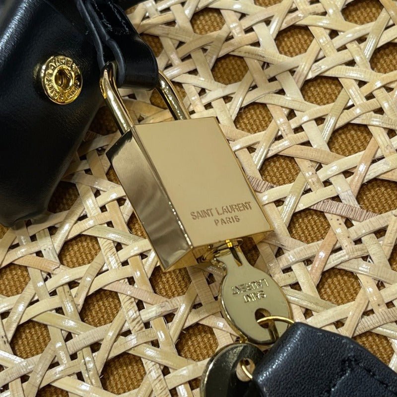 Material: Genuine leather and canvas Size: 20 x 10 cm Gold colored metallic pieces Brand box and dust bag included