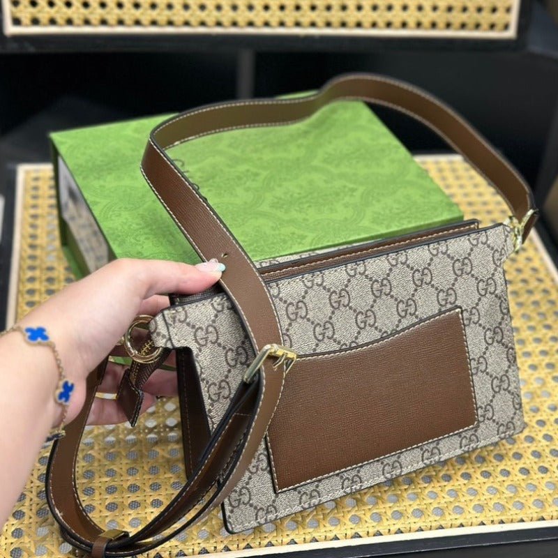 ZENVIA – Archy Messenger Monogram Macassar Bag Brown