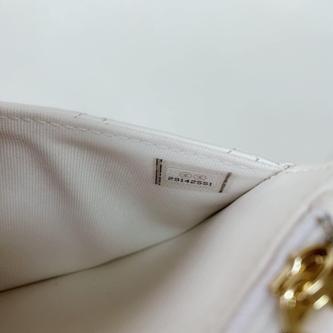 It’s a gorgeous bag with eye-catching chains and smooth leather. The long large chain is crafted in two-tone colors like silver and gold. And it’s as big as the chain on the Boy WOC. The beautiful new C C logo in built on the center, crafted from the idea of woven-chain-leather-strap, which is a style that represents the house.